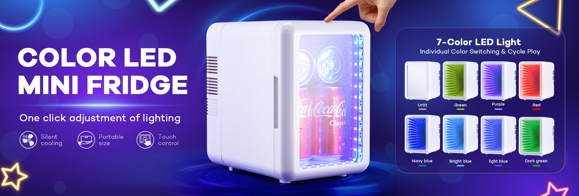Mini nevera portátil más popular de mesa, Mini nevera de bebidas de almacenamiento de bajo ruido con luz para juegos